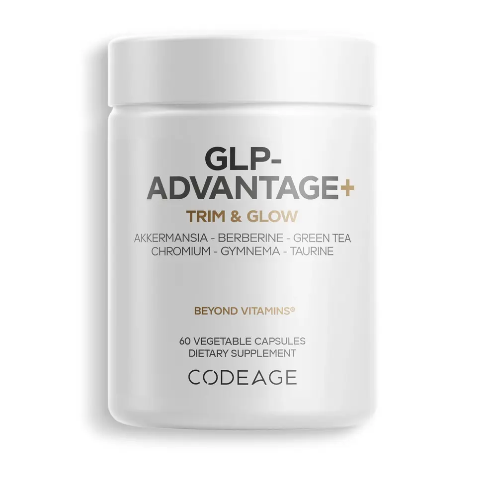 Codeage GLP-Advantage+ supplement is a comprehensive blend of chromium, berberine HCl, decaffeinated green tea, gymnema sylvestre, curcumin, L-taurine, resveratrol, boron, and a probiotic blend including akkermansia muciniphila. This GLP-1 advantage formula is crafted to help complement wellness routines.